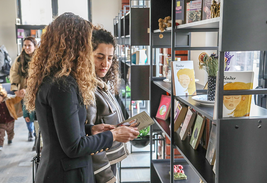 ئایلەم ئاکتی سەبارەت بەو کتێبانەی کە لەسەر ڕەفەکانی کتێبخانەکە دانراون، وتی؛ ” کتێبەکان بە پێی پێشنیارەکان هەڵبژێردران. هەندێک لە ژنە نووسەران کتێبی خۆیان بۆ پشتگیریکردن هێنا. ئەو کتێبانەی ئێستا لە کتێبخانەکەدان تەنها بەشێکن، لەوە زیاتریش هەیە. پێشنیار و لیستی کتێبەکان بەردەوام دێن. کتێب هەیە کە پانتاییەکی فراوانی هەیە، لە چیرۆکی ژنانەوە تا کتێب لەسەر ئەناتۆمی. ئاماژەی بەوەشکرد کە؛ ” کتێبی نووسەرانی بزووتنەوەی ژنان، کتێبی کوردی، کتێبی ئایدیۆلۆژی ژنان کە بەشدارییان لە بزووتنەوە فێمینیستەکاندا کردووە، هەروەها چەندین کتێبی تایبەت بە مێژووی ژن هەیە”.